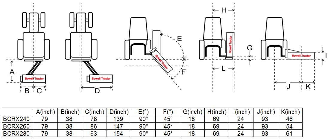 BCRX260/280 102/110 inches cutting width. For tractor from 100 to 200HP, cat II & III 3 point hitch.