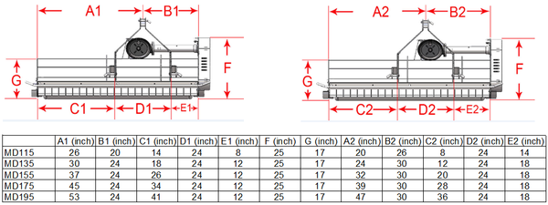 MD series(Its previous model name was "EFGC", we changed its model name as "MD" which means "Middle Duty") - for working widths from 135cm/53inch to 195cm/76inch.